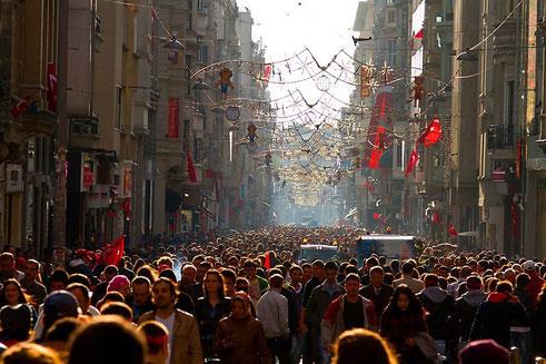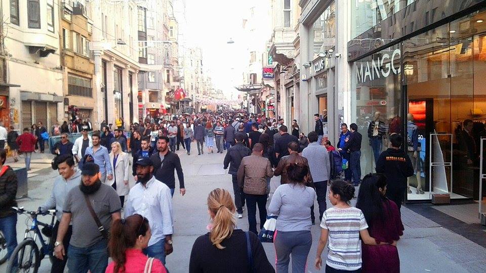 Un râu de oameni colorat şi gălăgios se revarsă pe strada Istiklal din Istanbul într-o zi frumoasă de primăvară, cu 2 zile înainte de referendumul constituţional din 16 aprilie. Tineri turci îmbrăcați hip, cu tatuaje, cercei, femei interesante, cele mai multe în negru, cu bocanci şi pants, ca niște rockeriţe doom metal, te fac să priveşti cu surprindere. Un aer occidental, relaxat.