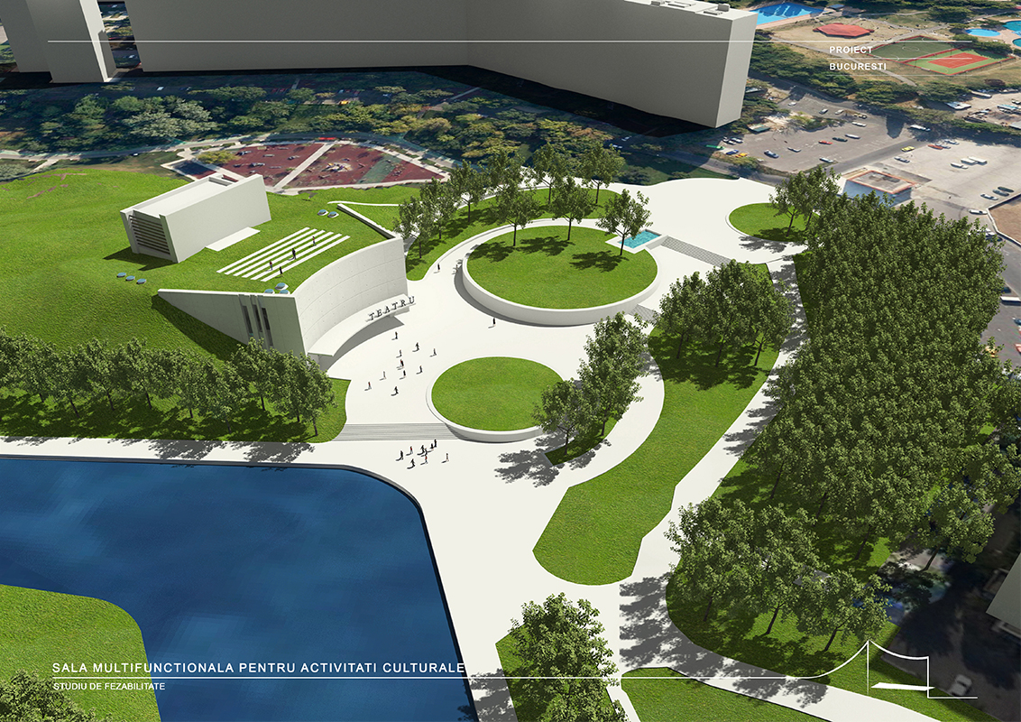 “Se propune construirea unei „Săli multifuncționale pentru activități culturale” cu 1200 de locuri pentru spectatori, dispuse în amfiteatru. Sala este prevăzută cu loje si balcon. Sala multifuncțională propusă se va amplasa pe un teren liber de construcții, fără vegetație înăltă (copaci), conform planurilor urbanistice în vigoare (PUG Municipiul București şi PUD), în cadrul parcului Titan, în apropierea Lacului Titan, pe latura sudică a acestuia (zona de acces dinspre Liceul Dante Alighieri). Pornind de la obiectivul stabilit de la început, acela de a afecta cât mai puțin vegetația existentă şi de a integra cât mai discret construcția propusă în contextul existent al parcului Titan, s-a optat pentru varianta acoperirii clădirii cu terasă înierbată şi continuarea acesteia pe latura din spate şi pe laturile laterale cu valuri de pământ care vor completa şi amplifica relieful existent. Punctul de belvedere de pe movila existentă în prezent se va muta pe terasa înierbată a clădirii”, se arată în descrierea proiectului postată pe site-ul Primăriei Sector 3.
