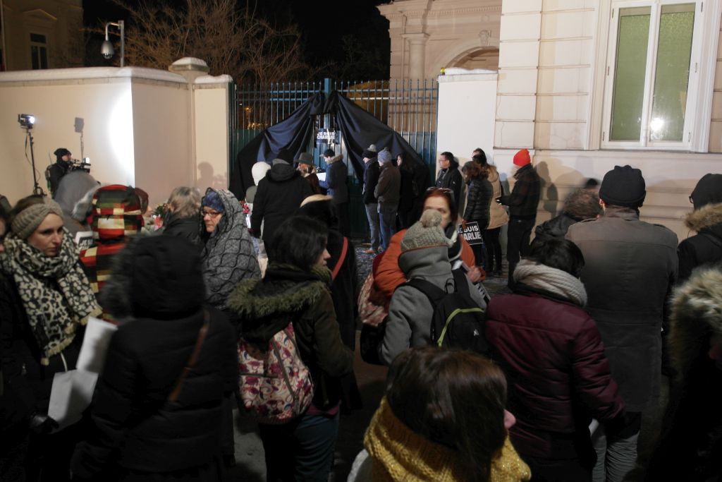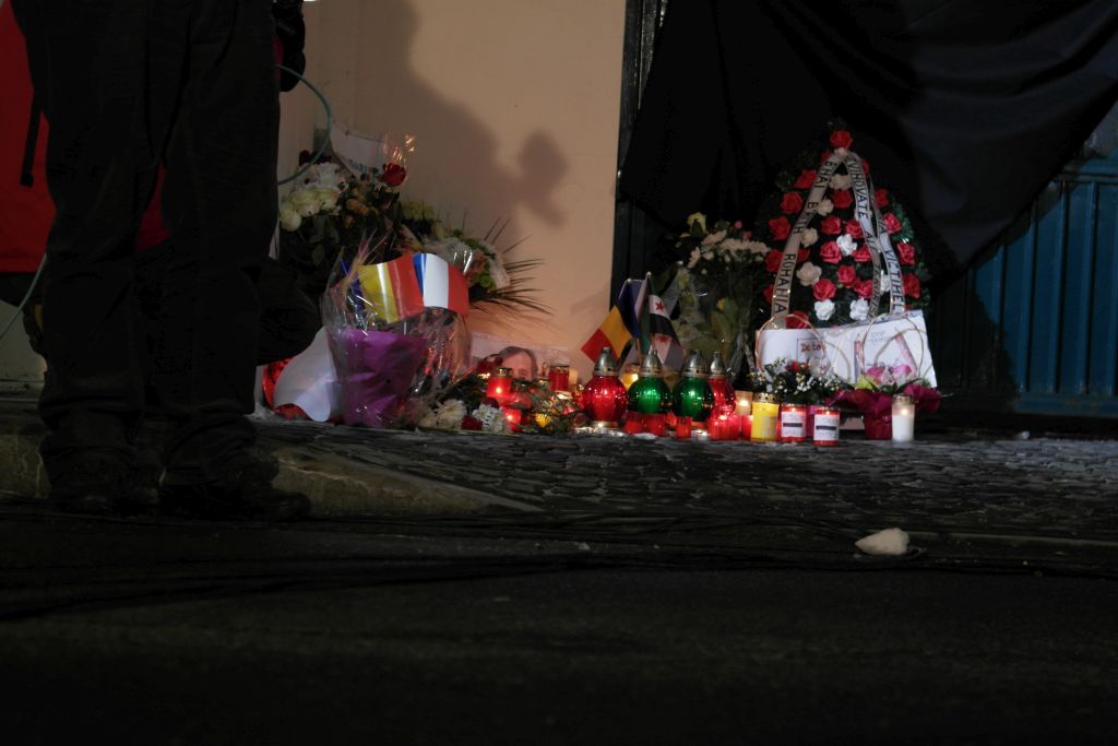 BUCUREȘTI: Zeci de persoane s-au adunat și la București, în fața Ambasadei Franței, pentru a aprinde lumânări, pentru a transmite mesaje și pentru a-și exprima solidaritatea cu victimele atentatului de la Paris.