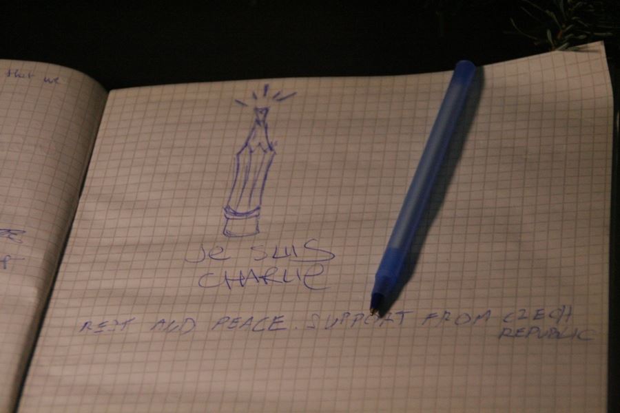 Oamenii au adus hârtii pe care au scris JE SUIS CHARLIE/EU SUNT CHARLIE, într-un gest de sfidare a celor care ucid în numele credinței lor. Marșul de solidaritate a fost organizat de tinerii din Asociația Studenților Francezi de la Cluj. În orașul Cluj-Napoca există cea mai mare comunitate academică franceză din Europa Centrală și de Est. Tinerilor francezi li s-au alăturat și numeroși români, printre Ovidiu Câmpean, fost student la Paris. ”Îmi manifest solidaritatea cu victimele atentatelor. Nu putem accepta un astfel de gest”, a spus Ovidiu Câmpean.