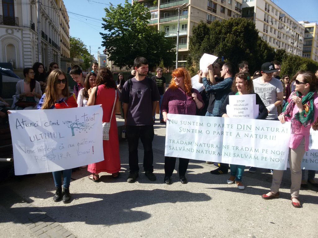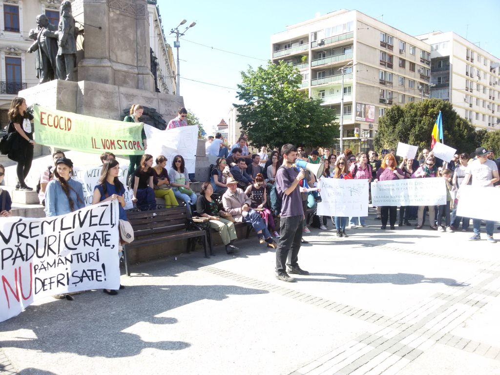 La statuia domnitorului Alexandru Ioan Cuza, mai mulți protestatari au luat cuvântul, toți militând pentru  stoparea furtului din păduri, eliminarea abuzurilor semnalate în dreptul companiilor de exploatare și prelucrare a lemnului. În același cadru s-a făcut apel la implicarea reală cetățenilor în chestiuni ce țin de protejarea mediului, a fondului forestier.