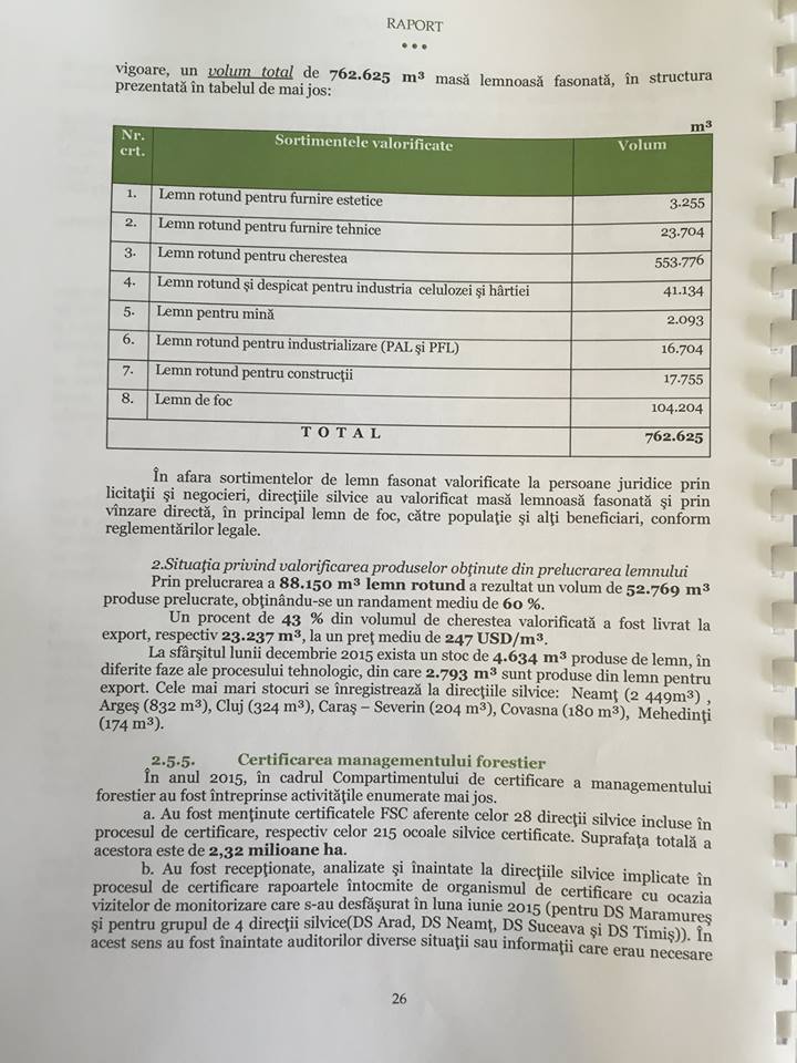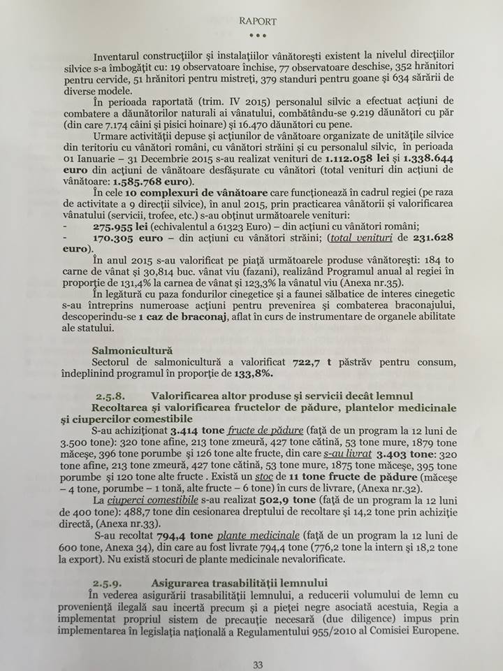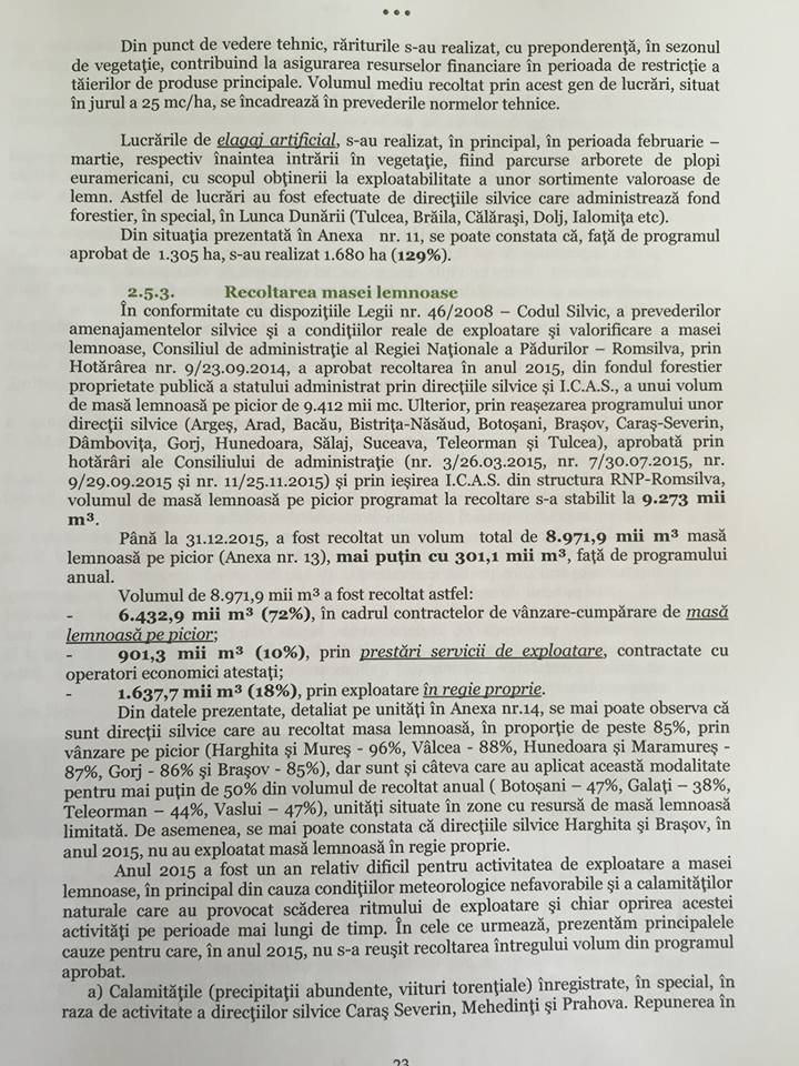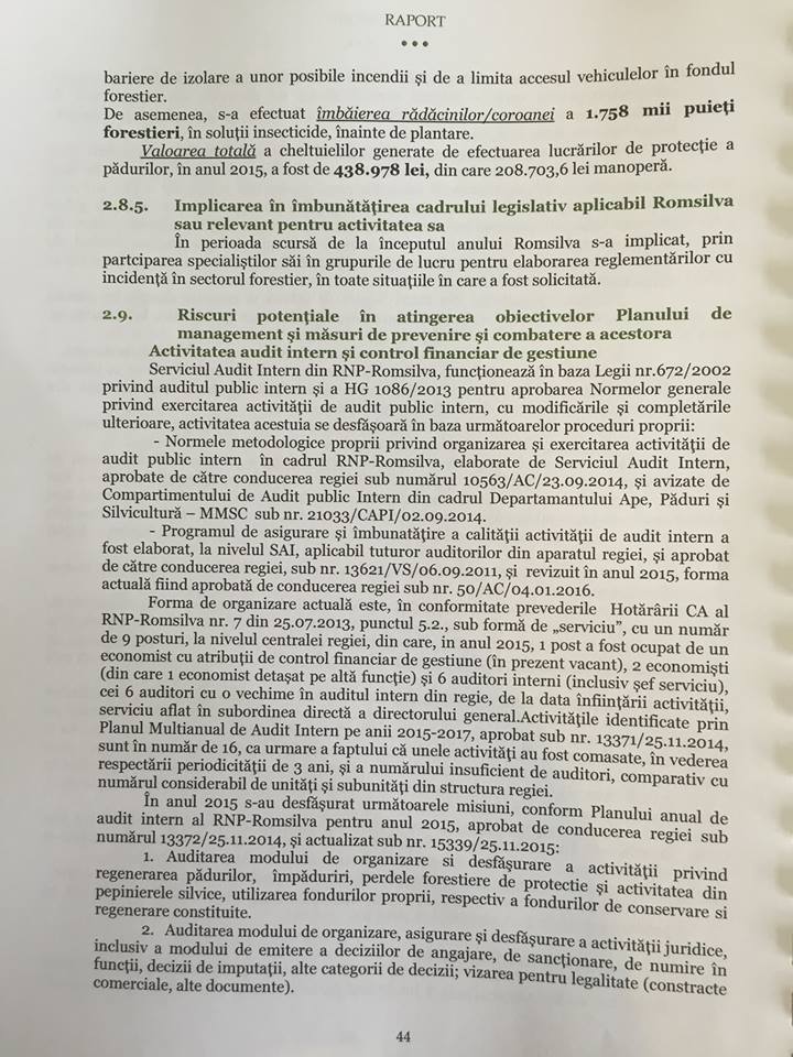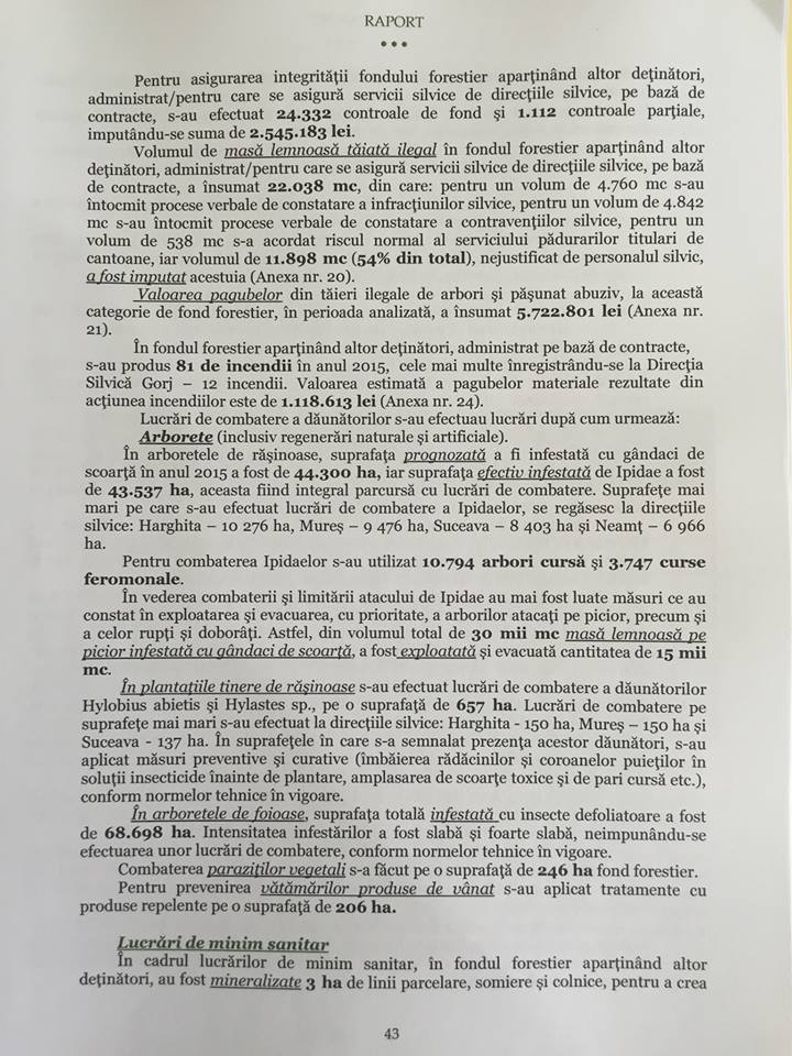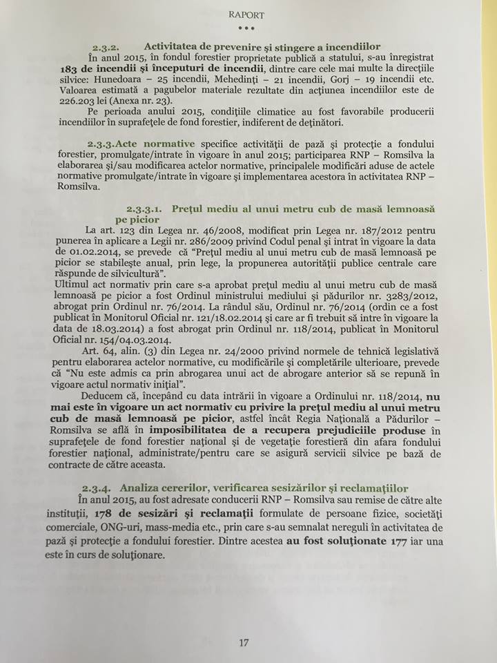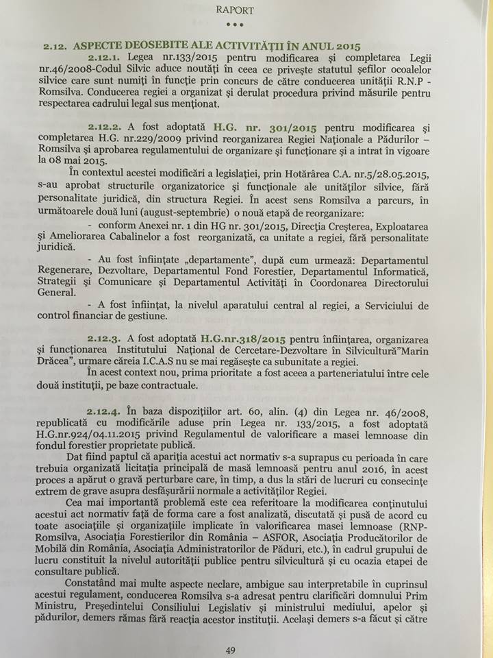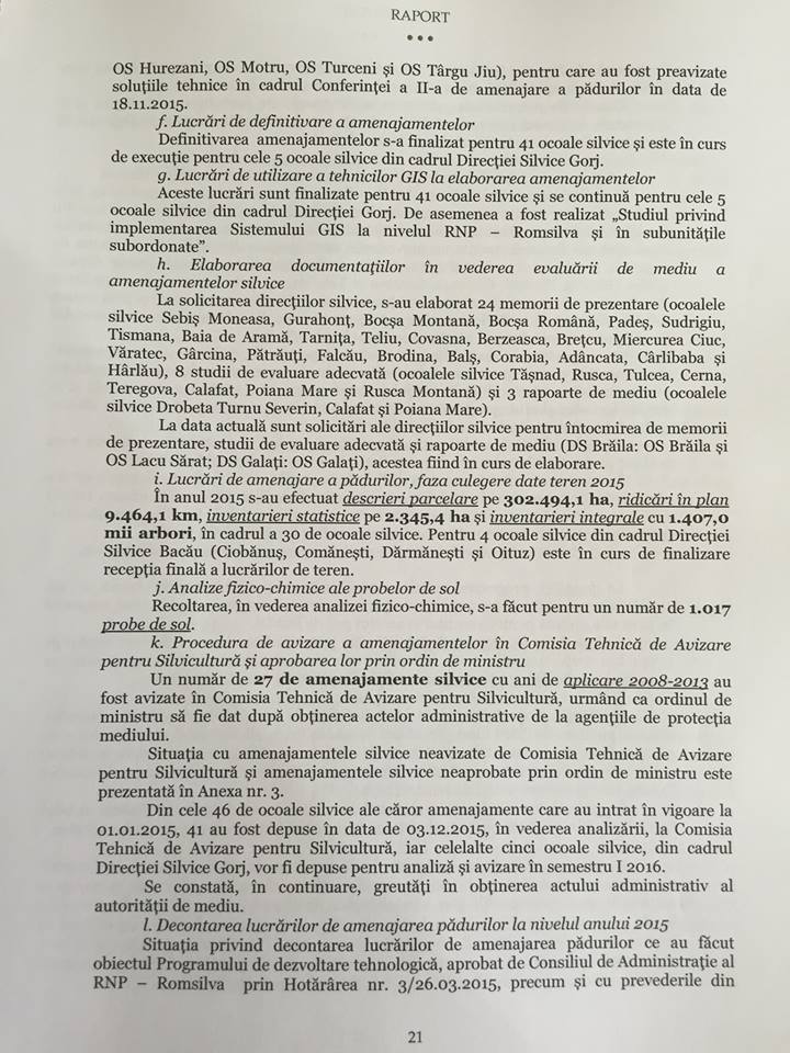 Păun acuză însă atât pe autorii raportului, cât și pe membrii CA-ului care l-au aprobat, de superficialitate, ei alocând un spațiu periferic problemei retrocedărilor ilegale, care reprezintă cauza principală a distrugerii și degradării pădurii: ”În raportul de activitate al lui Crăciunescu, această problemă este relatată, mai mult decât lacunar, pe câteva rânduri, la Capitolul 2.10 – Activitatea Juridică. Pe o jumătate de pagină, redactată fără un minim de respect, atât față de gramatica limbii române, cât și față de eventualii cititori, responsabilul activității juridice menționează că: „prin procesele câștigate prin hotărâri definitive și irevocabile, consilierii juridici din cadrul regiei au reușit menținerea în proprietatea publică a statului român suprafața de cca. 239.000 hectare teren forestier. În justificarea afirmației ce ar reflecta succesul juriștilor, sunt enumerate mai multe suprafețe, unele nominalizate pe solicitanți, altele global pe județe. Mărimea suprafețelor enumerate nu are corespondent în realitate, iar dacă însumăm cifrele prezentate ajungem la concluzia că suprafața de 239.000 ha, declarată ca succes, nu are nicio acoperire. De altfel, cu diverse ocazii mediatice, a fost lansată această cifră ca o realizare deosebită a serviciului juridic din regie, sub directa coordonare a lui Adam Crăciunescu, în încercare de a combate, în contrapondere, acuzațiile din dosarul pentru care este trimis în judecată”, afirmă Păun, care subliniază că toate exemplele pe care Crăciunescu le-a clamat ca fiind victorii personale pentru apărarea patrimoniului forestier ar fi de fapt acțiuni promovate în instanțele de judecată, în anii de dinaintea înscăunării sale la șefia Romsilva, în special când director general era Valerian Solovăstru.