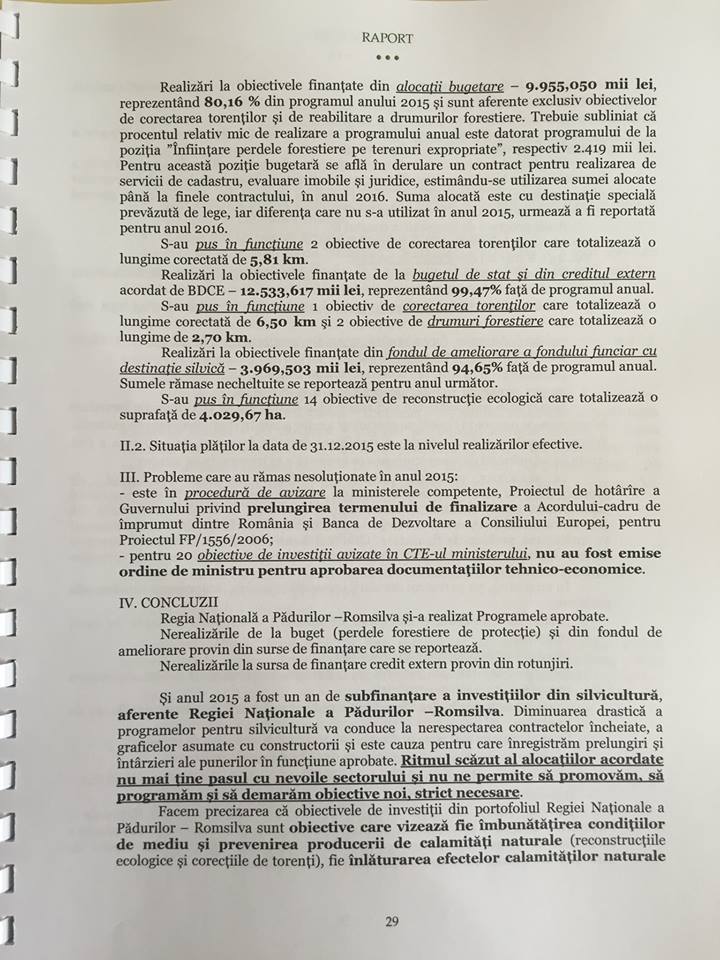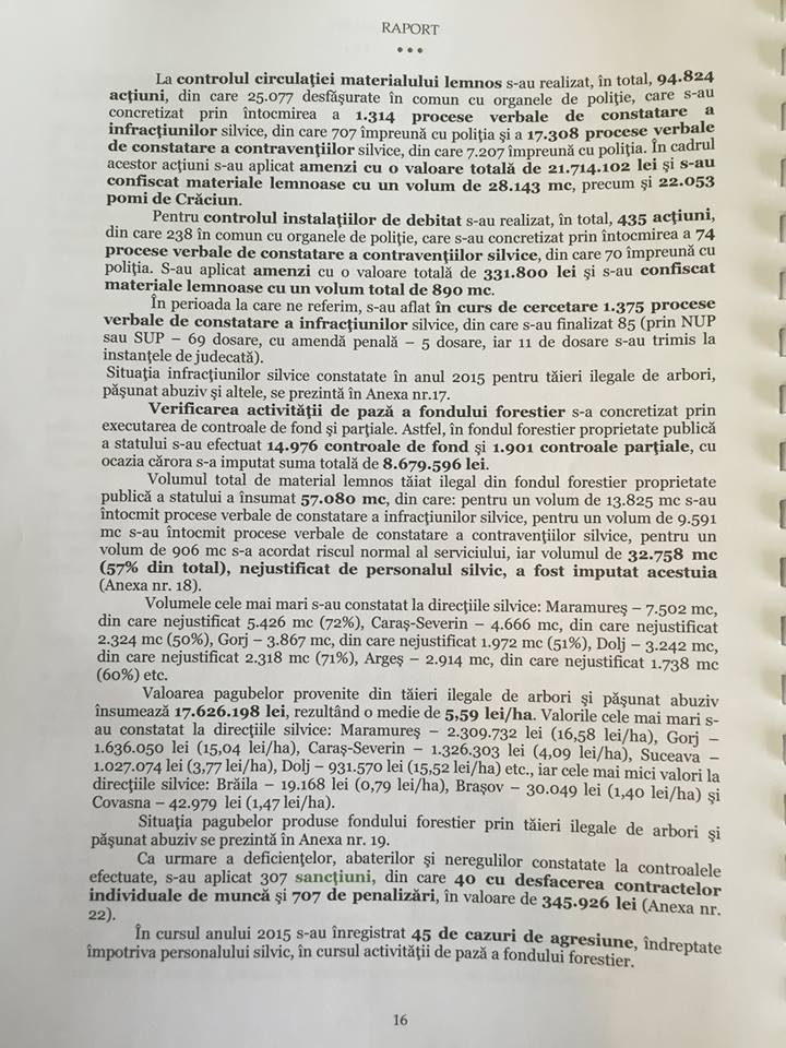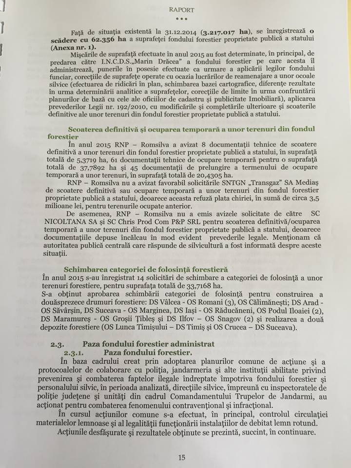 Gabriel Păun crede că flagelul topirii sub ochii noștri a codrilor României e insuficient reflectat în raportul de activitate al directorului general al Romsilva, cu atât mai mult cu cât situația pădurilor a ajuns subiect de discuție pe agenda de securitate națională: ”În 09.06.2015, situația stării fondului forestier național a făcut obiectul analizei în cadrul Consiliului Suprem de Apărare al Țării, unde s-a arătat că amploarea distrugerii și degradării pădurilor din România, prin tăieri necontrolate de material lemnos, este într-o legătură cauzală directă cu retrocedările ilegale de terenuri forestiere. Această situație excepțională, nemaiîntâlnită în istoria pădurii românești, ar fi trebuit să reprezinte baza raportului prezentat de către directorul general Consiliului de Administrație”.