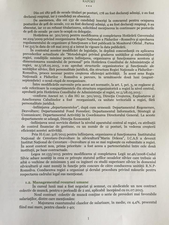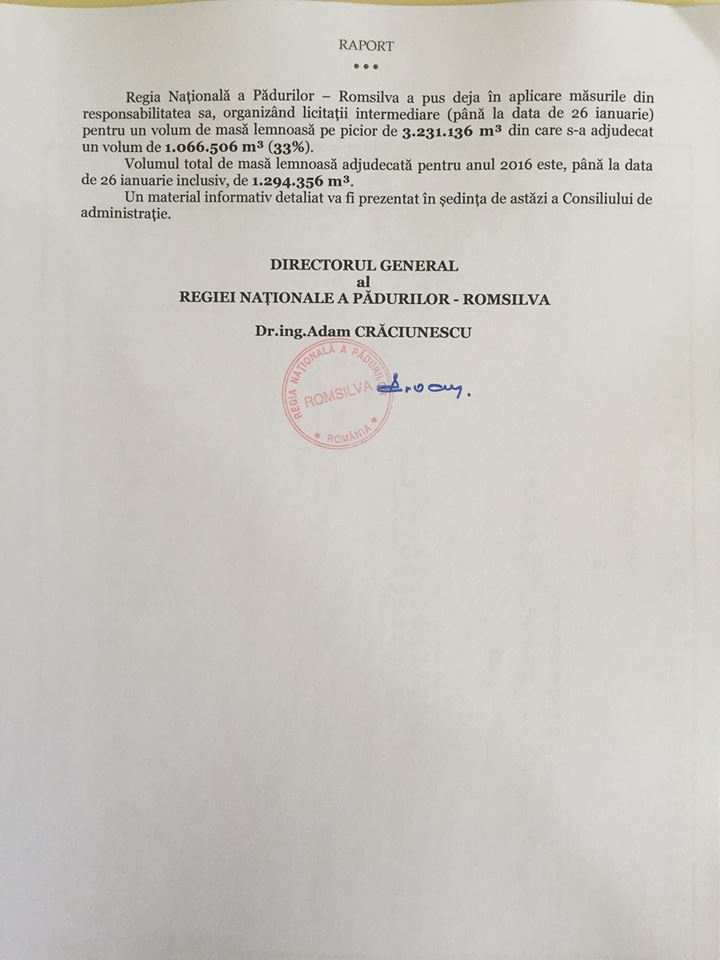 2014, Adam Crăciunescu nu a luat nicio decizie). Atât raportul de activitate asumat de Adam Crăciunescu, cât și analiza acestui document, făcută de specialiști silvici, sunt în esență imaginea clară a modului defectuos în care RNP Romsilva a fost condusă în mandatul lui Adam Crăciunescu și răspund la două întrebări: De ce statul român pierde pădurile din proprietate și administrare? Cine are de câștigat de pe urma unui director slab, numit în funcție într-o instituție care administrează o avere a statului de multe miliarde de euro? Din urmașă a Casei Autonome a Pădurilor Statului (C.A.P.S.), cea care în perioada interbelică a gospodărit pădurile statului și a creat cele mai valoroase păduri din Europa, RNP Romsilva a ajuns din model de administrație a pădurilor într-o stare catastrofală, cu complicitatea conducerii guvernului”.