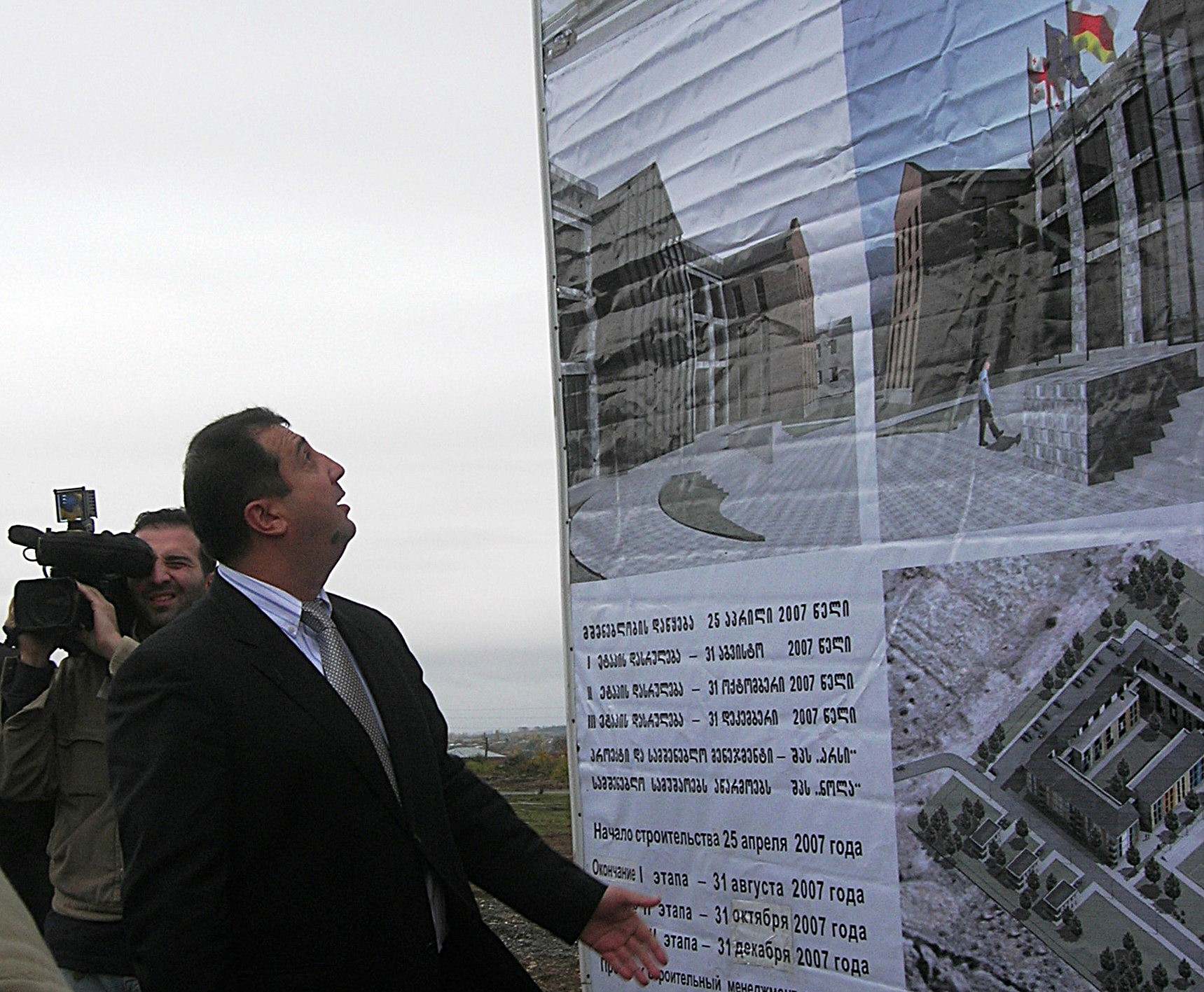 Privesc un teanc de fotografii făcute în timpul acelei vizite, într-un sat din Oseția de Sud, alături de un grup de donatori ai programelor de reconciliere. Nu am văzut cerdace, nici turnuri de pază, nici vreo urmă de arhitectură tradițional caucaziană. Doar clădiri neterminate de beton, împodobite cu afișe plastifiate. Pe un perete cenușiu, un steag georgian – crucea roșie, mare, pe fond alb. Ne aflam pe partea nerusească a marelui tunel de sub Caucaz; Vladikavkaz, despre care scrisesem separat, în relatarea mea din Oseția de Nord, rămânea dincolo, înspre nord, iar armata rusă – tot acolo. Nici nu apucăm bine să coborâm din Toyotele albe ale trupelor de pacificare ale Națiunilor Unite, că începe ploaia – fotografia de pe coperta cărții. Primesc în grabă trei pagini: o hartă a satului, o listă de fapte și un discurs pregătit. Acoperișurile și terasele nu sunt terminate; ambasadorii și miniștrii adunați pentru ceremonie aleargă în toate direcțiile, și noi odată cu ei, căci mașinile s-au retras.