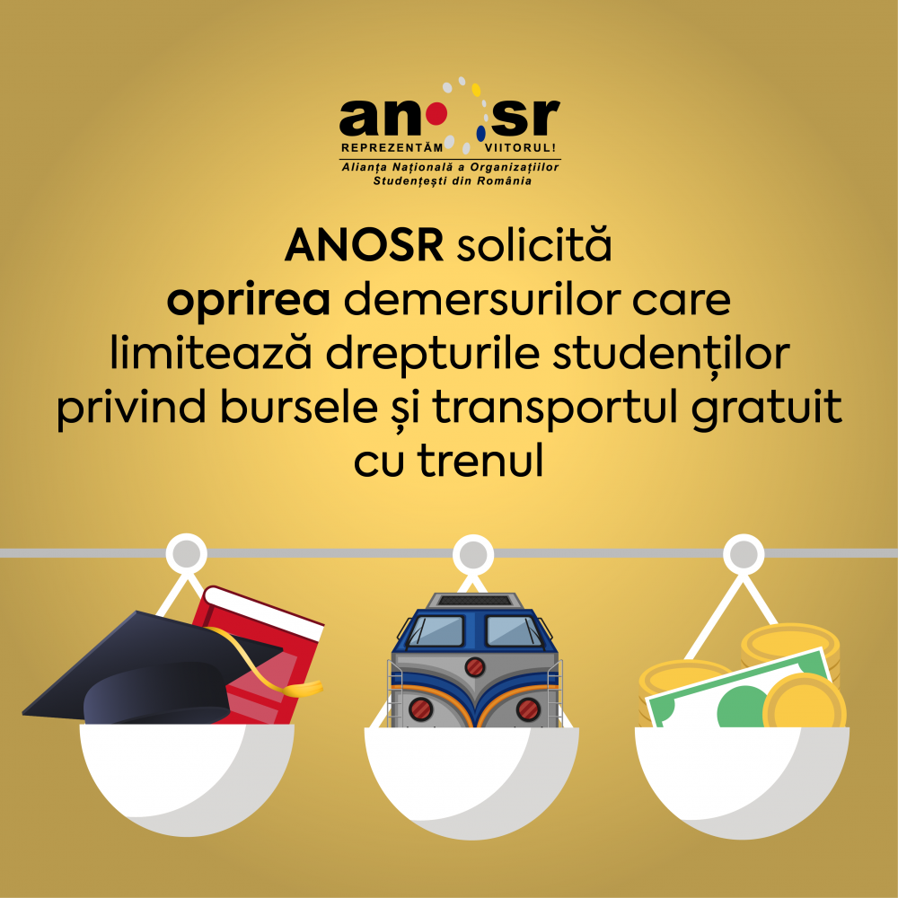 Alianța Națională a Organizațiilor Studențești din România (ANOSR) solicită actualei coaliții de guvernare oprirea tuturor demersurilor prin care se limitează drepturile studenților privind transportul gratuit cu trenul și acordarea burselor.