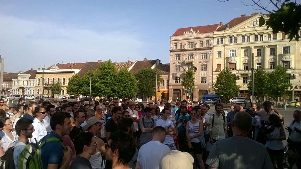 Afară sunt 36 de grade Celsius. Cu plus. E deja spre orele serii (18.00), dar mai e de așteptat până când să se facă răcoare. De parcă ”minimele” de 24 de grade anunțate la radio că vor fi pe parcursul nopții ar însemna „răcoare”. Daniel și Bob, animatorii evenimentului de pe Facebook (prin care clujenii erau chemați, joi, la protest împotriva deciziilor penale ale Parlamentului), au cu ei un microfon, o mini stație și o boxă. Nu știu încă ”cum se face”, dar învață din mers. Mai lasă să se adune ceva lume și nu sunt hotărâți dacă e bine sau rău că, la prima strigare, din scurt, au venit peste o sută de tineri (până la final numărul celor prezenți se va dubla) ori să fie supărați că sunt „doar atâția”. No, așa e pe aici, pe la Cluj, de când cu Arafat și sănătatea, cu ACTA, cu Roșia Montană, cu votul din diaspora ori cu pădurile, lumea s-a obișnuit cu cifrele mari – cu miile și zecile de mii de oameni în stradă.