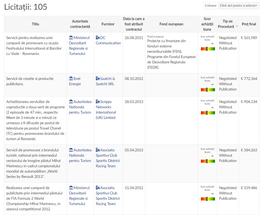 Pe această platformă puteți vedea ce sume rezultă din achizițiile publice din domeniul publicității și toate detaliile aferente fiecărei achiziții prezentate plus o serie de analize.