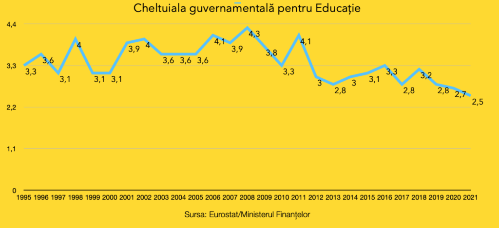Figura 1. Procentul alocat educației din PIB (1995-2021), prin bugetul de stat