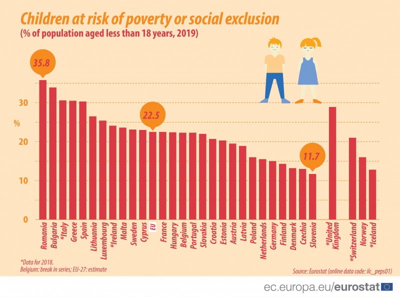 Fig. 3. Populația sub 18 aflată în risc de sărăcie la nivel european