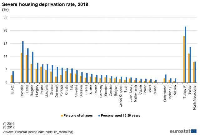 Fig. 2. Deprivarea locativă în Europa, pe grupe de vârstă