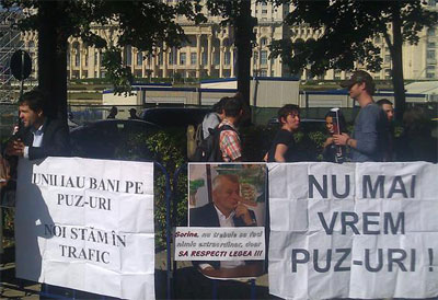 Circa 30 de reprezentanti ai Platformei pentru Bucuresti au protestat, luni, in fata Ministerului Dezvoltarii. Mitingul a inceput la ora 9.00 dimineata fiind autorizat pana la ora 11.00. Protestatarii au venit cu pancarte pe care scria: “Unii iau banii pe PUZ-uri, noi stam in trafic!”, “Sorine, nu trebuie sa faci nimic extraordinar doar sa respecti legea” si “Acesta este bd. tau (n.r. – bd. Aviatorilor). Va mai fi bulevardul tau”.