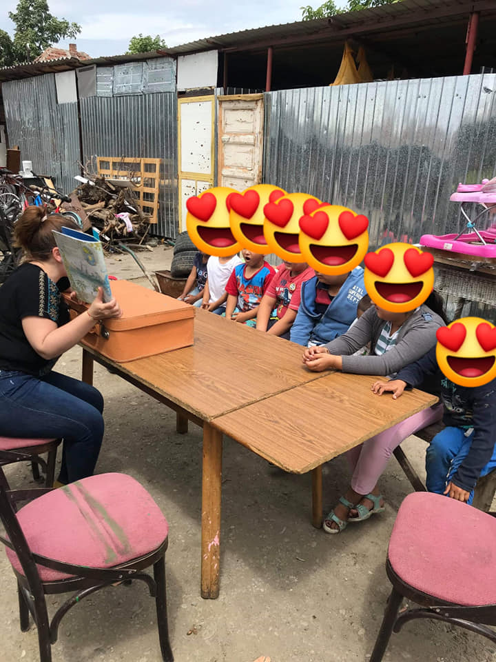 Şi am făcut un altfel de picnic. Bunica a pus pe jos pătura, iar copiii s-au strâns. 32 de copii care se jucau pe stradă au venit imediat ascultători la noi. Alina a cântat cu ei şi le-a citit poveşti. Am adus un cufăr, căci prin proiectul Cufărul cu povești promovăm lectura şi i-am lăsat pe copii să-şi aleagă câte o carte. Pentru unii copii era prima carte pe care o au acasă. Vă vine să credeţi că există copii care cresc fără cărţi, fără poveşti? Erau aşa fericiţi de cărţile din cufăr, încât le-am promis că dacă vor citi, le dăm mai multe. Erau fericiţi de fiecare surpriză primită. Nu ştiam ce număr poartă la încălţăminte, dar aveam o plasă întreagă cu papuci, sandale, ghete şi ne-am jucat celebra scenă din “Cenuşăreasa”. Am încălţat 20 de copii cu încălţămintea donată de elevii din clasa mea. 20 de copii în Bencecu şi alţi 30 în Pesac. Pentru unii însă nu am avut. Copiii au rămas desculţi, aşa cum au venit pe stradă.