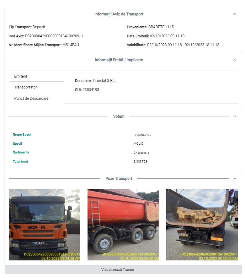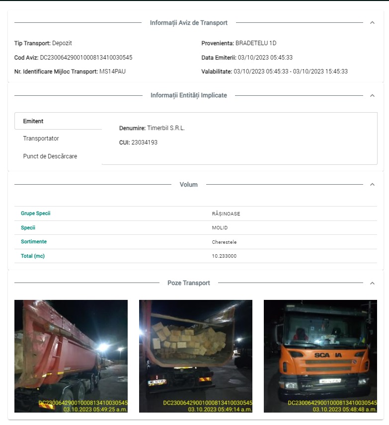 - În avizele din luna octombrie 2023, potrivit Codului Unic de Înregistrare, emitent și transportator e societatea Timerbil