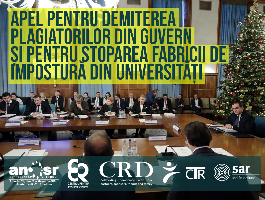 De asemenea, vă rugăm să luați măsuri concrete pentru oprirea fabricii de impostură din universități. Un punct de plecare pot fi recomandările noastre din Raportul integrității universitare din România, document conceput și lansat ca urmare a eforturilor Coaliției pentru Universități Curate (CUC).