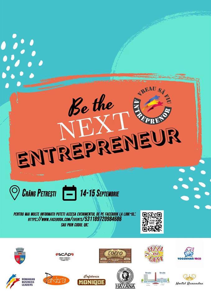 Evenimentul se desfășoară pe parcursul a două zile, pe 14 și 15 septembrie 2019, în aer liber, în Crângul Petrești de lângă Focșani. Sâmbăta este destinată workshopului dedicat participanților, iar duminică evenimentul este deschis publicului. Susținătorii își pot vota preferații pentru premiul de popularitate pe pagina evenimentului “Be the next entrepreneur!”, a precizat Cătălina Ciobotaru, coordonatorul proiectului “Be the next entrepreneur!”, Ambasador “Vreau să fiu antreprenor” în Vrancea.