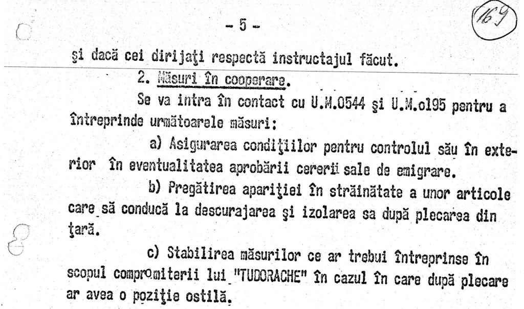 Pentru a reaminti cu ce erau însărcinați, printre altele, colaboratorii Securității operând în exterior, reproduc aici câteva fragmente dintr-o NOTĂ DE MĂSURI care se întinde pe cinci pagini, în speranța că vom înțelege de ce este necesară scoaterea la lumină a unor documente precum Lista celor 200.