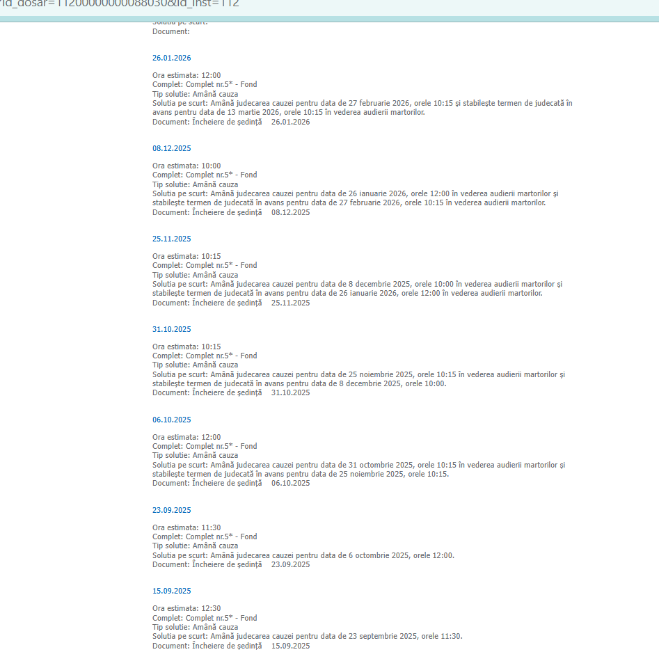 Cu toată recunoașterea vinovăției, Ioan Scurtu și Dimex nu au ajuns să fie condamnați, procesul fiind, încă, în faza primei instanțe. Potrivit portalului instanțelor, deși dosarul a fost înregistrat la Tribunalul Bistrița-Năsăud în noiembrie 2022, doar în martie 2025 a trecut de etapa camerei preliminare. Primul termen pe fond s-a stabilit pentru septembrie 2025, dată de la care s-au înregistrat nu mai puțin de 8 amânări ale cauzei, următorul termen, la care ar urma să fie audiați martorii, fiind programat pentru 13 martie 2026.