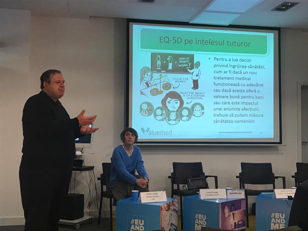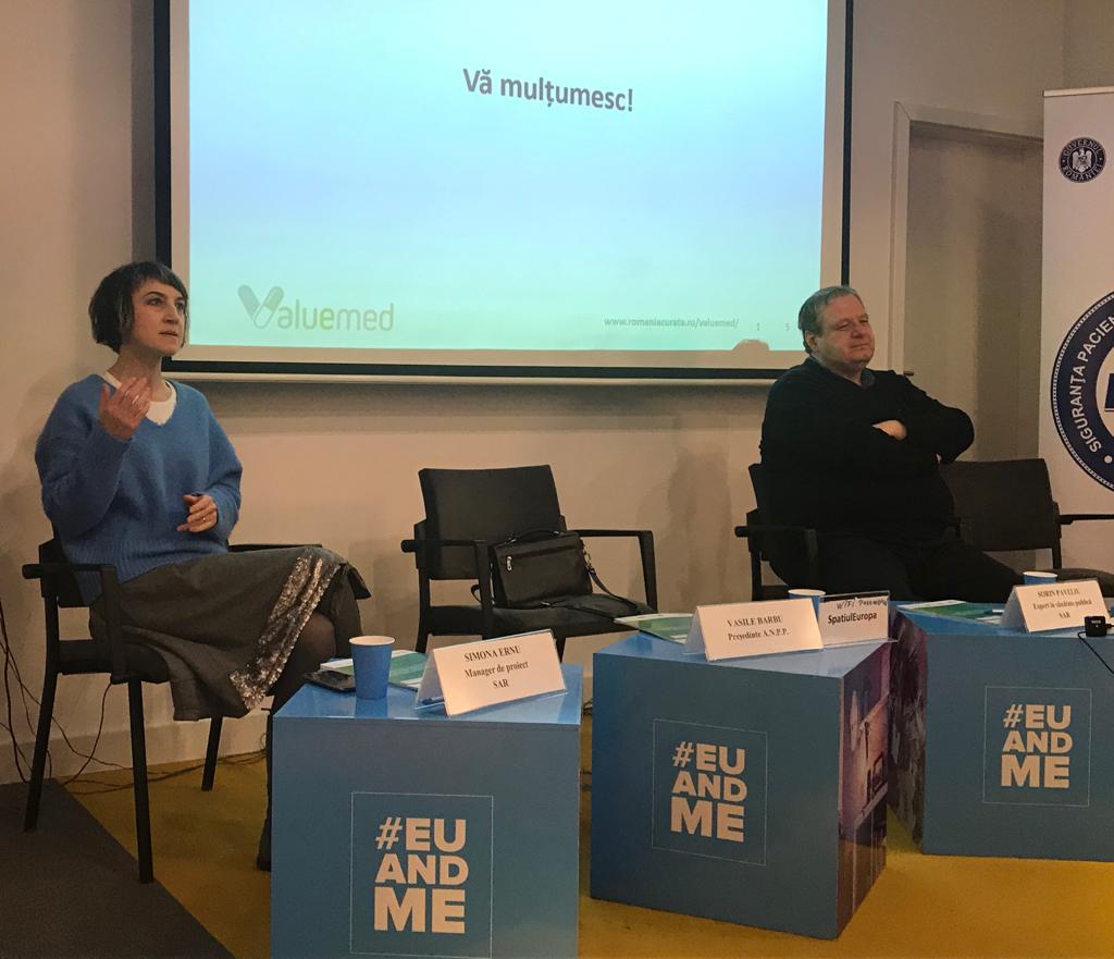 Conferința VALUEMED s-a desfășurat la Spațiul Public European, din București, prin amabilitatea Reprezentanței Comisiei Europene în Romania și a Biroului de Informare al Parlamentului European în România, în prezența reprezentanților instituțiilor publice și private care activează în domeniul sănătății publice.
