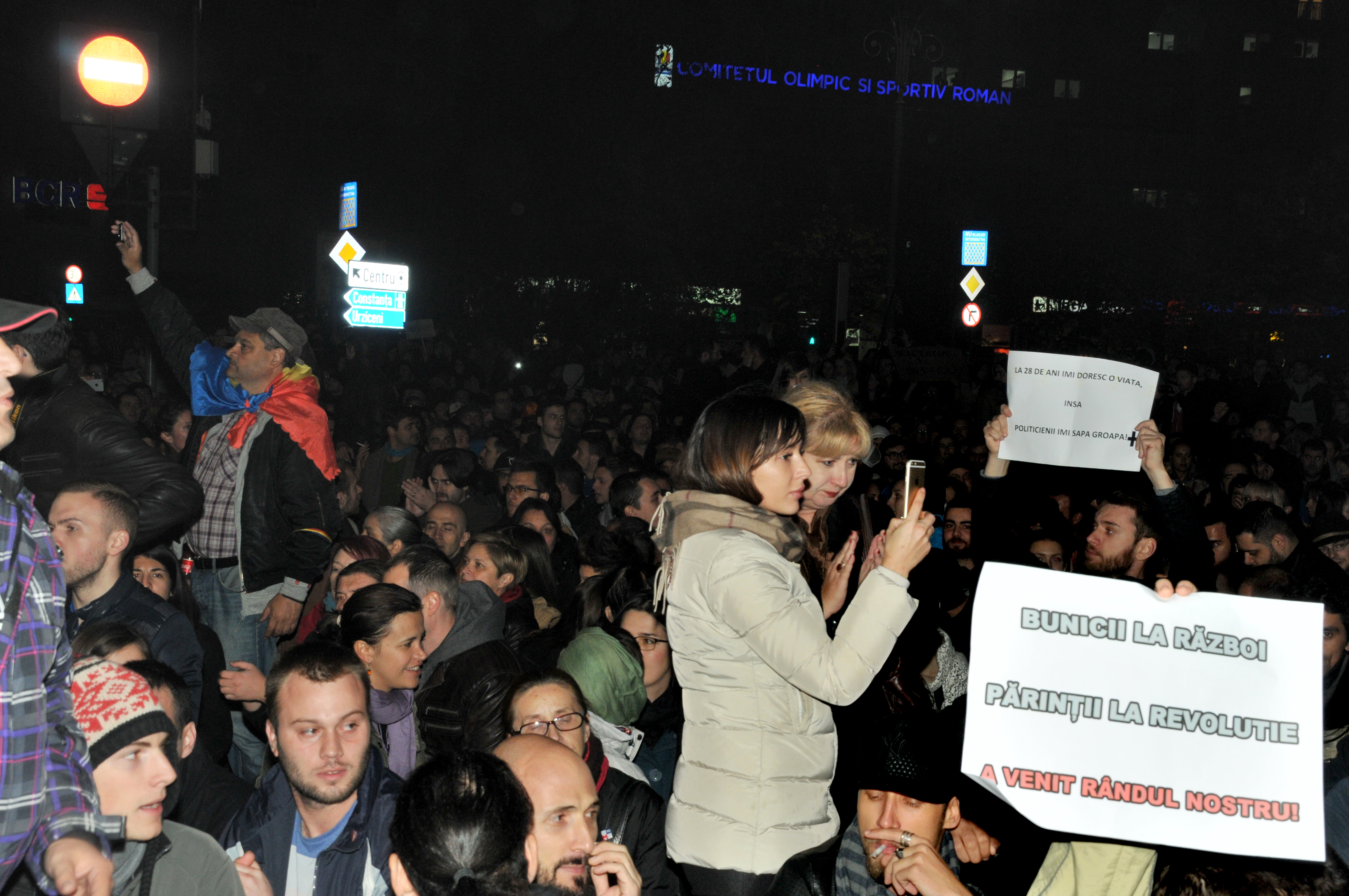 A început ca un protest pentru demisia primarului de la Sectorul 4, Piedone, dar a fost mai mult decât atât. Zeci de mii de cetățeni au blocat centrul Capitalei într-o amplă manifestare de protest declanșată de tragedia de la Colectiv. ”Jos, Ponta!”, ”Jos, Oprea!”, ”Ieșiți din casă dacă vă pasă!”, au fost scandările celor care au mărșăluit pe marile bulevarde ale Bucureștiului.