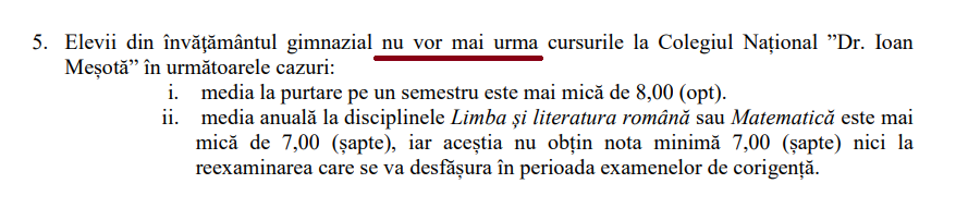 Ignoranță sau rea credință? Care să fie cauza pentru care trei licee din Brașov: Colegiul “Andrei Șaguna”, Colegiul “Dr. Ioan Meșotă” și Colegiul “Grigore Moisil” și-au arogat prin Regulamentul Intern dreptul de a obliga elevii să se transfere la finalul anului școlar dacă nu au media generală minimum 8,50, mediile la matematică și limba română minimum 8, iar nota la purtare cel puțin 9,5? Această gravă situație a devenit publică după o postare pe grupul de facebook “Părinții cer schimbare”.