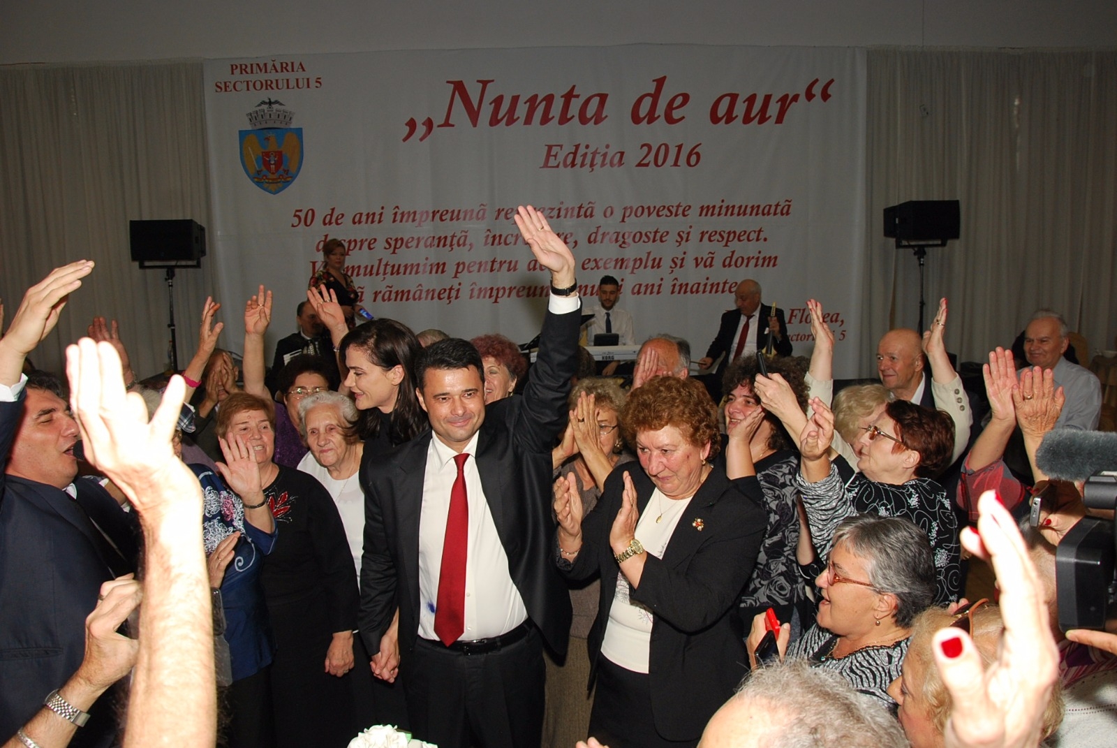Primăria Sectorului 5 condusă de edilul PSD Daniel Florea a organizat o petrecere pentru 600 (potrivit comunicatului Primăriei) – 700 de pensionari (potrivit primarului Florea): Nunta de aur pentru cuplurile care au împlinit 50 de ani împreună. 228 de cupluri au fost premiate cu câte 1000 de lei.