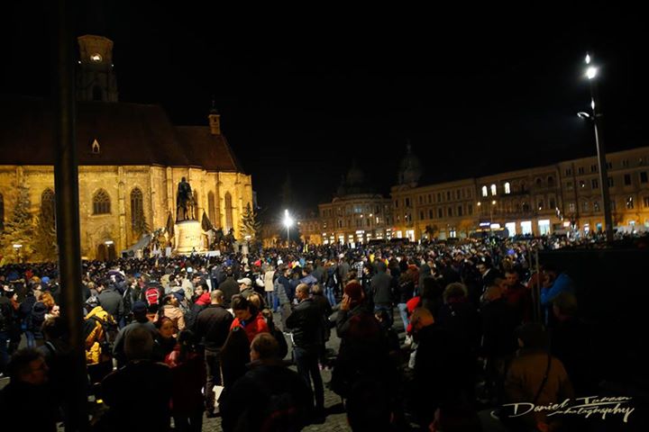 Clujul a fost scena celui mai mare protest din țară organizat vineri seara din solidaritate cu românii din diaspora și împotriva Guvernului care nu le-a asigurat condiții pentru a vota. În ciuda faptului că studenții clujeni au fost trimiși în vacanță din ordinul ministrului Educației, în ciuda concurenței cu meciul de fotbal România – Irlanda de Nord și a festivalului SoNoRo, extrem de mulți oameni au ieșit în stradă. Aproximativ 15.000 de oameni, potrivit forțelor de ordine, și peste 20.000, potrivit organizatorilor, au reluat în stradă scandările ”Uniți, salvăm toată România!”, ”Poporul revoltat, al treilea candidat!”, ”Solidaritate”, ”Jos comunismul” și ”Libertate”, dar și ”Jos, Ponta, jos / Ești un mincinos”, care au fost strigate și în urmă cu o săptămână, iar unele și în toamna trecută. Cu această ocazie s-a dat citire Declarației de la Cluj (o puteți citi aici) și timp de mai bine de două ore au mărșuluit pe străzile orașului.